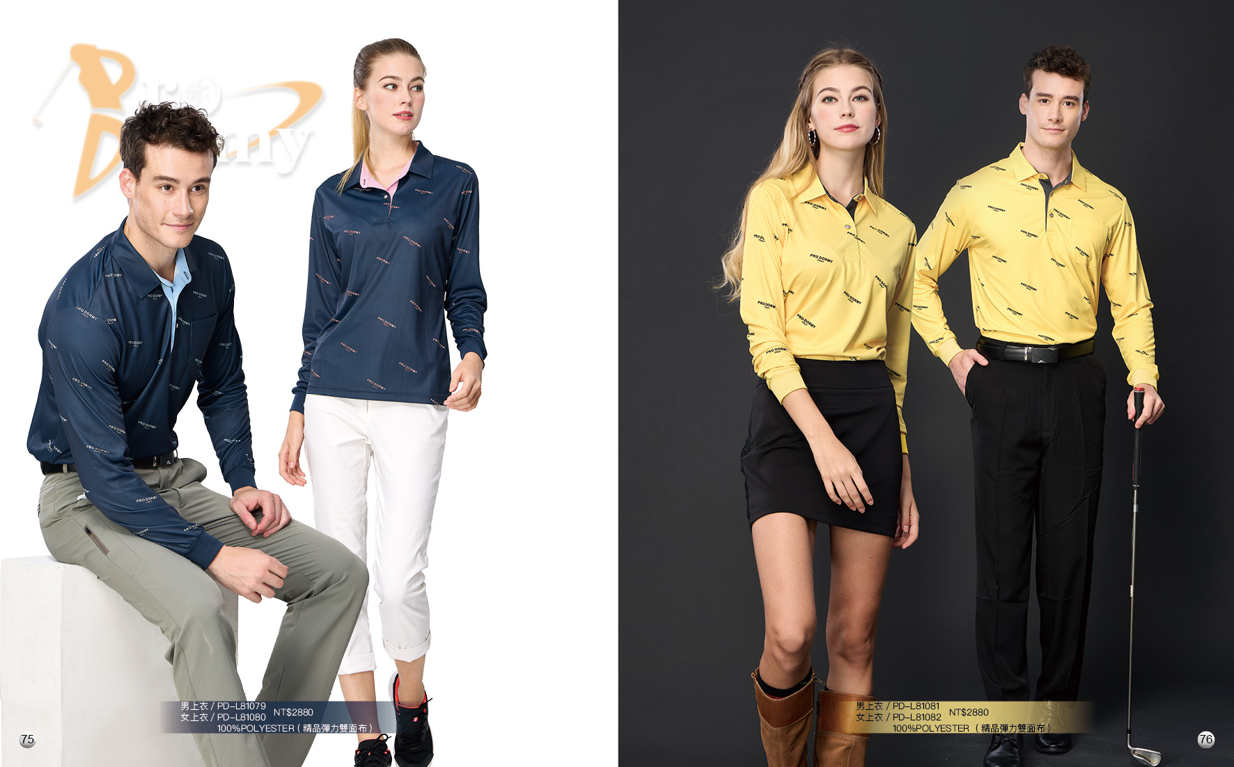 NT$2880男:PD-L 81079 (丈青色)、PD-L 81081 (黃色)女:PD-L 81080 (丈青色)、PD-L 81082 (黃色)100%POLYESTER (精品彈力雙面布)