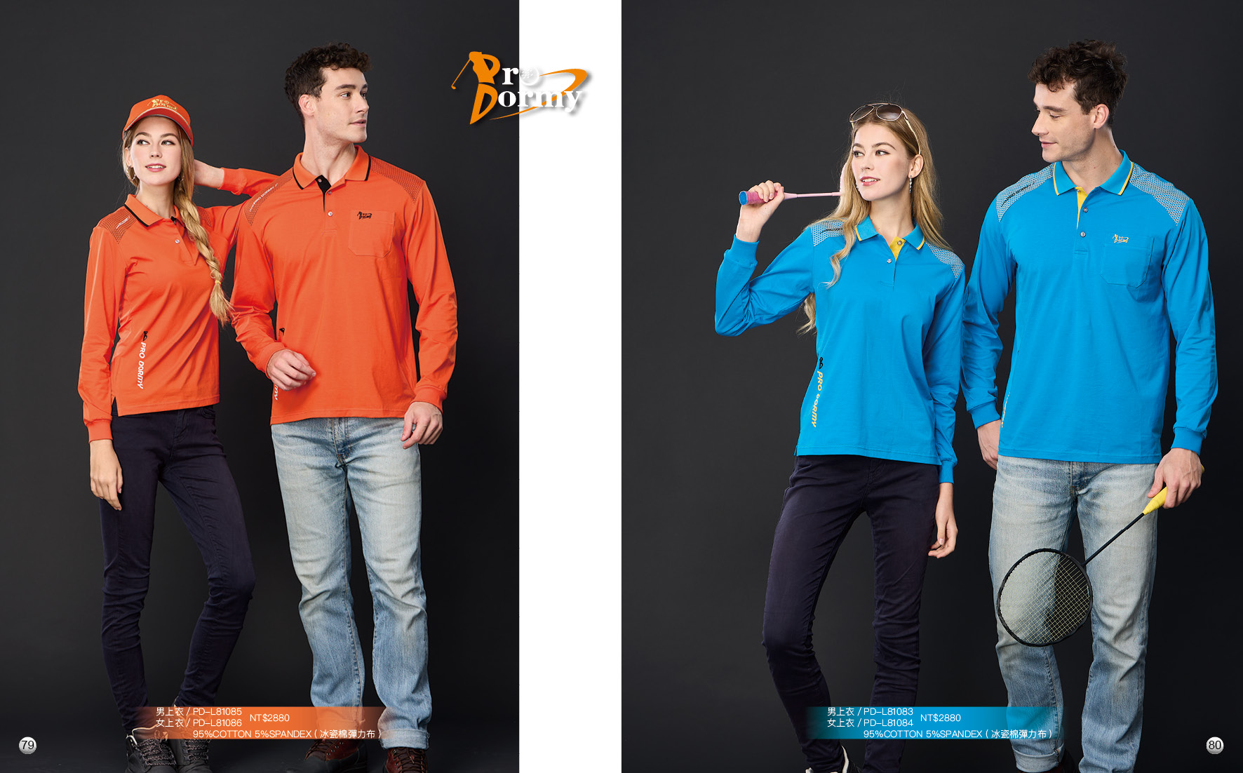NT$2880男:PD-L 81083 (藍色)、PD-L 81085 (橘色)女:PD-L 81084 (藍色)、PD-L 81086 (橘色)95%COTTON 5%SPANDEX(冰瓷棉彈力布)
