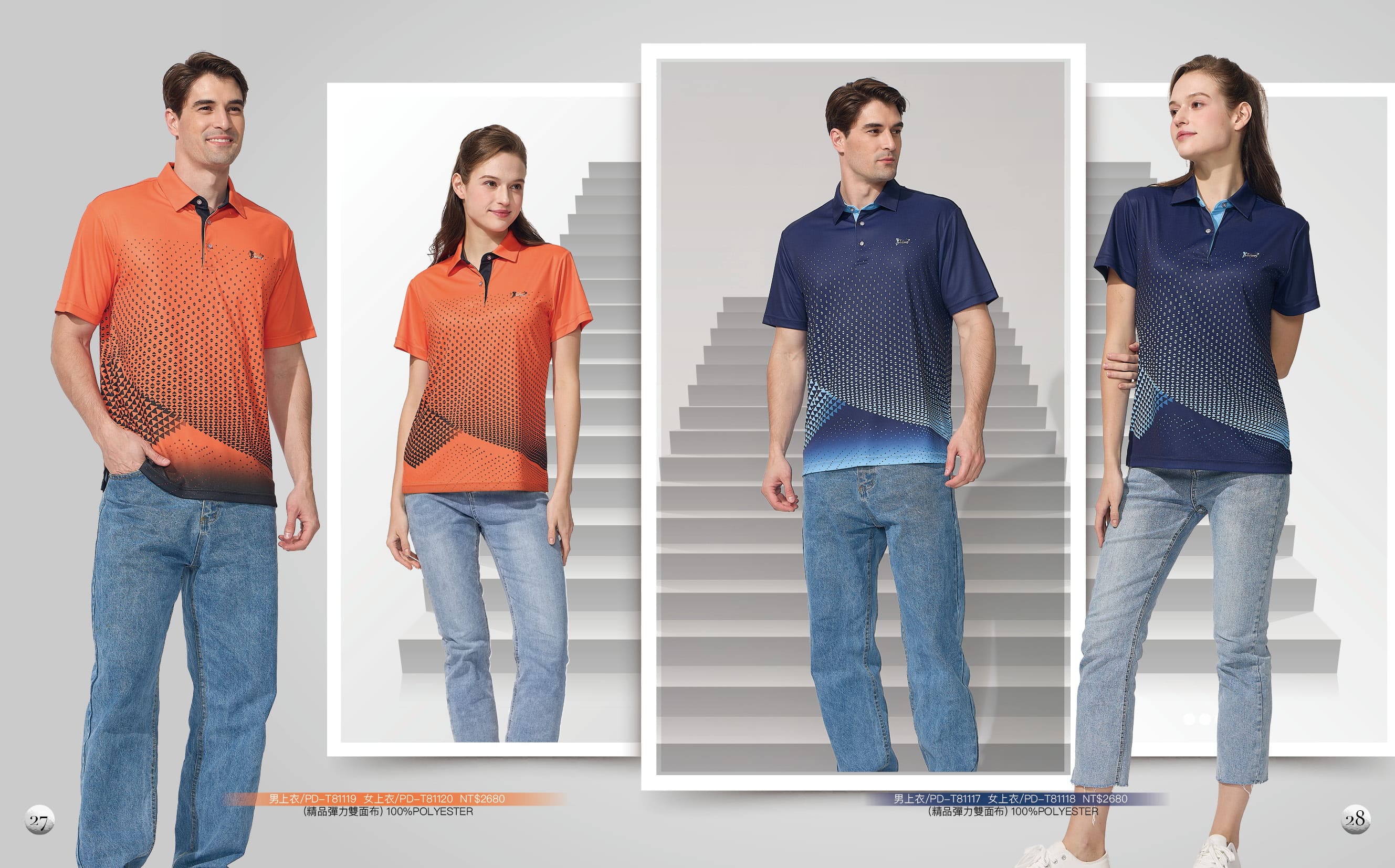 NT$2680男:PD-T 81119 (桔色)、PD-T 81117 (藍色)女:PD-T 81120 (桔色)、PD-T 81118 (藍色)100%POLYESTER (精品彈力雙面布)