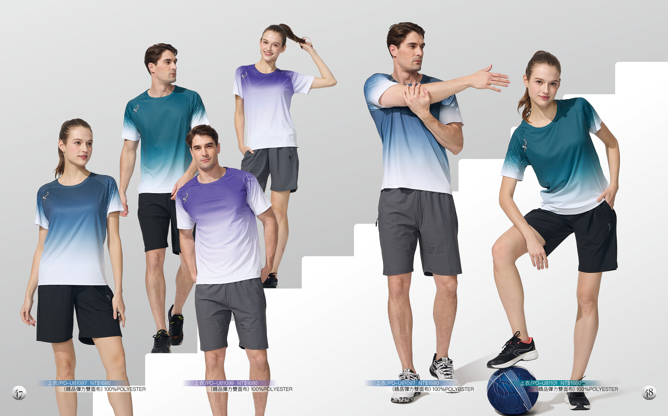 NT$1180PD-U 72833 (藍色/紅)、PD-U 72831 (丈青/綠)PD-U 72835 (紫色/藍)100%POLYESTER (雙紋排汗布)PD-U 72825 (桔色)、PD-U 72827 (綠色)PD-U 72829 (藍色)100%POLYESTER (菱眼排汗布)