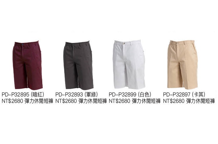 NT$2680 PD-P 32895 (暗紅)、PD-P 32893 (軍綠) PD-P 32899 (白色)、PD-P 32897 (卡其) 97%COTTON 3% SPANDEX (彈力布)