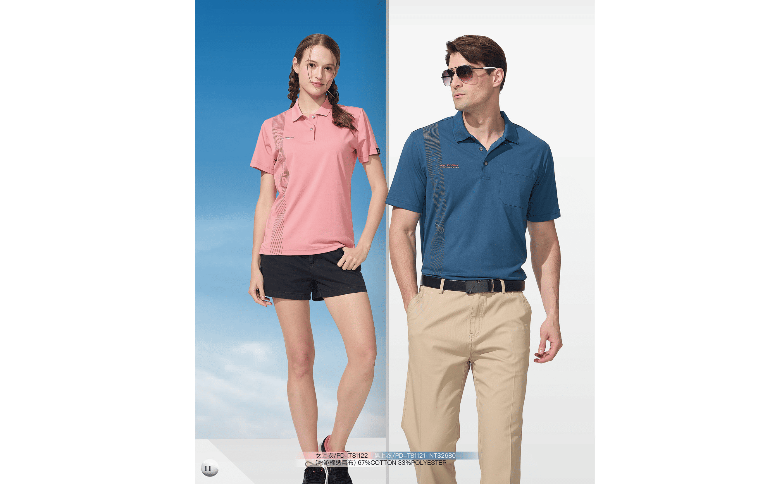 NT$2680 男:PD-T 81121 (藍色) 女:PD-T 81122 (粉色) 67%COTTON 33%POLYESTER (冰沁棉透氣布)