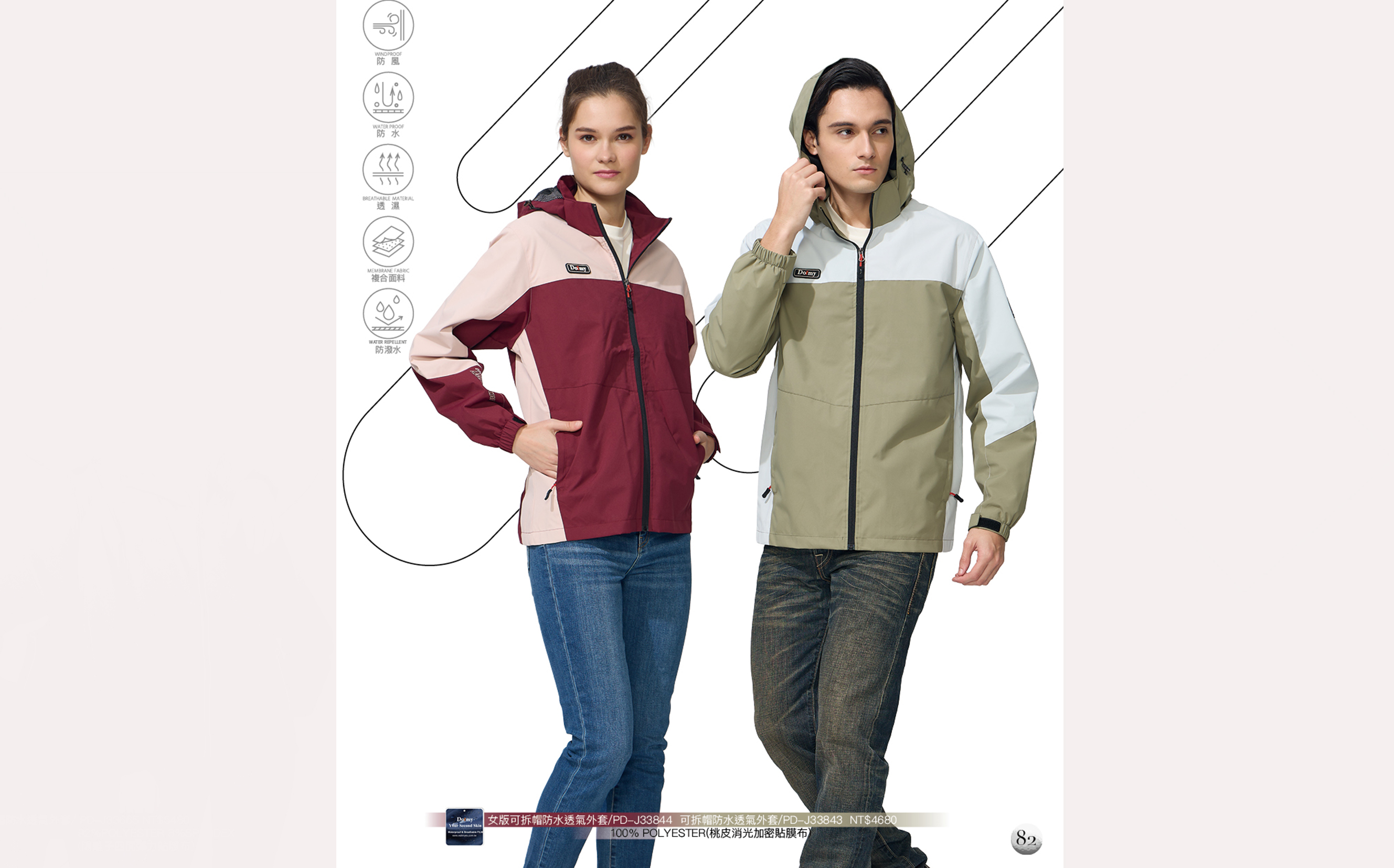 NT$4680 PD-J 33843 PD-J33844(紅色/粉色-女版) 100%POLYESTER (桃皮消光加密貼膜布)