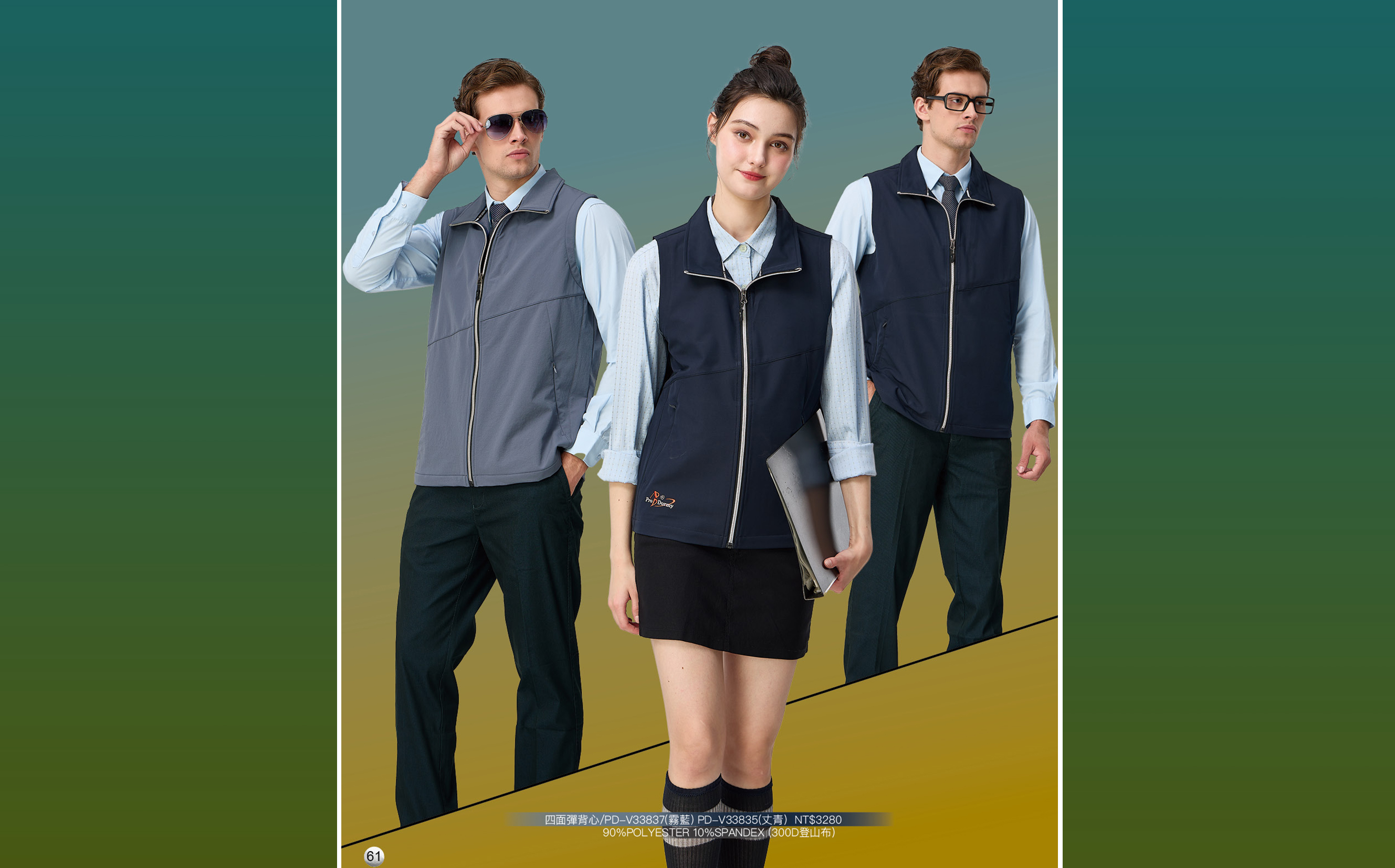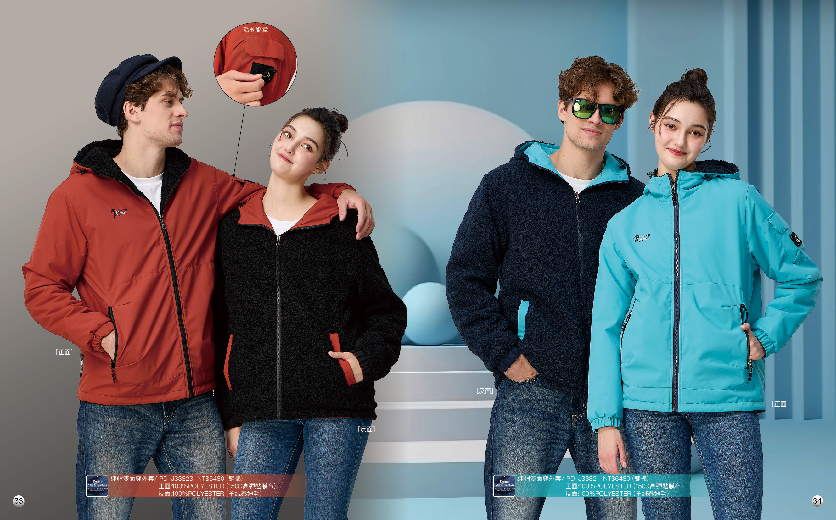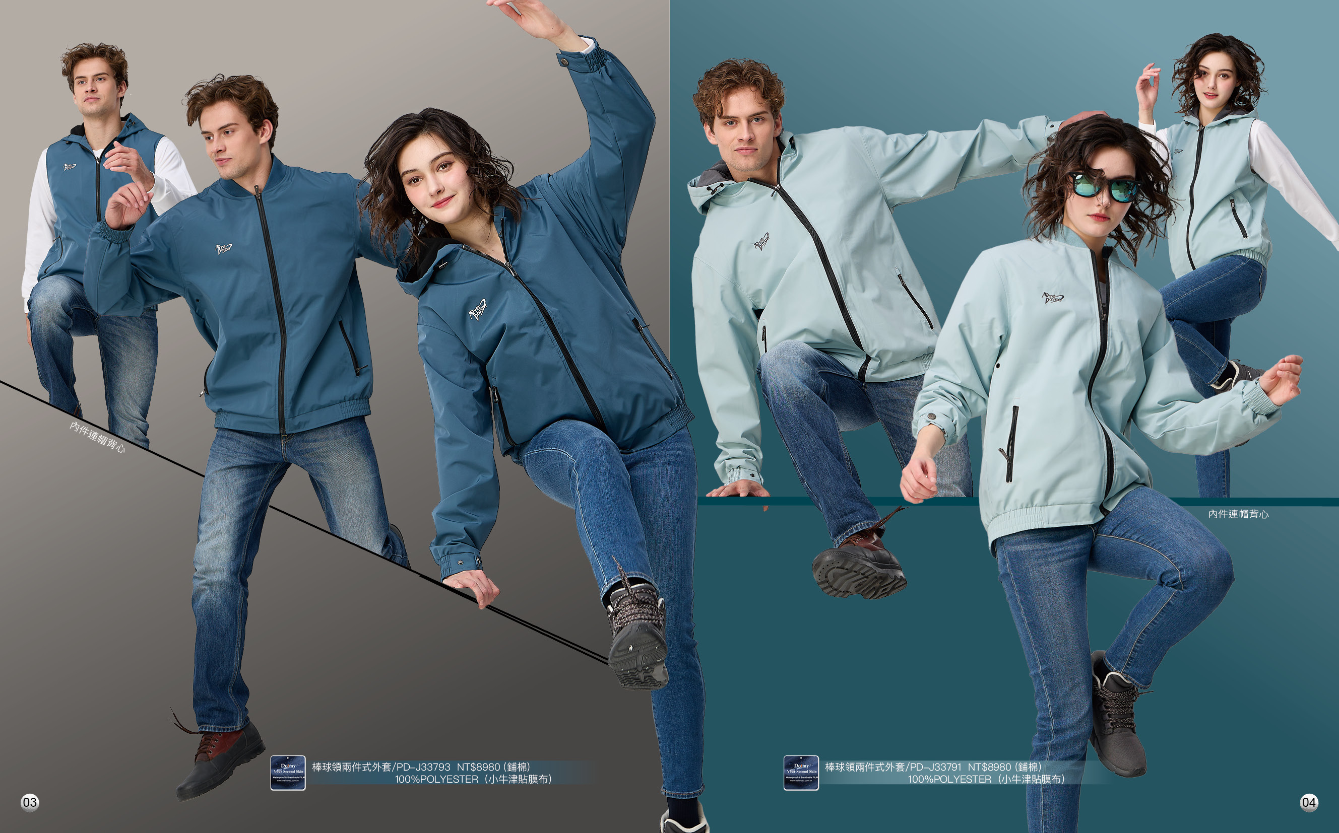 外套:PD-S 33681 (白色/黑色/橘色)、PD-S 33683 (丈青/綠色/白色)