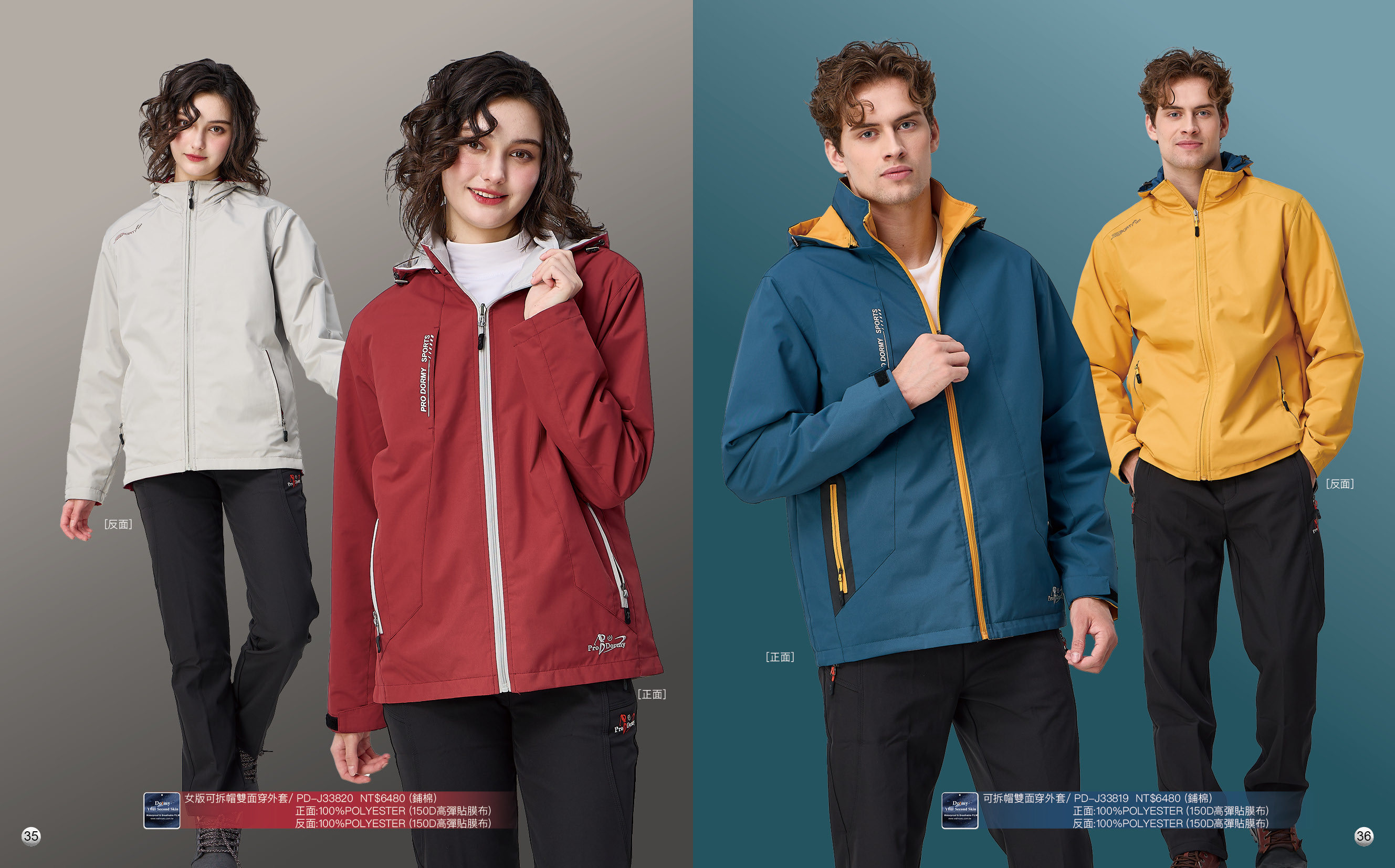 NT$6480 PD-J 33819 (靛藍/黃色) PD-J 33820 (鏽紅/淺灰女版) 正面:100%POLYESTER(150D高彈貼膜布) 反面:100%POLYESTER(150D高彈貼膜布)