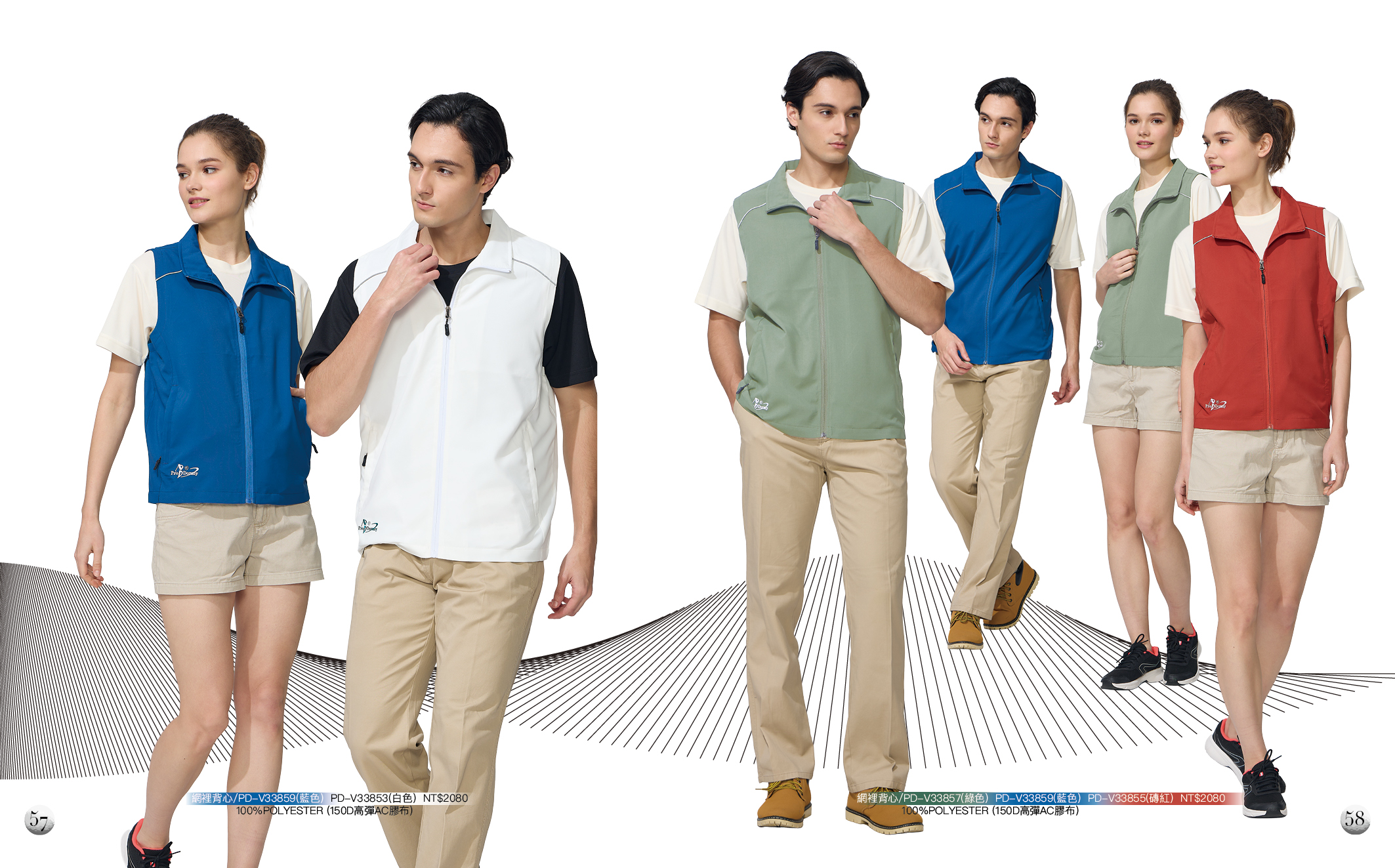 NT$2080 PD-V 33853 (白色)、PD-V 33855 (磚紅) PD-V 33857 (綠色)、PD-V 33859 (藍色) 100%POLYESTER (150D高彈AC膠布)