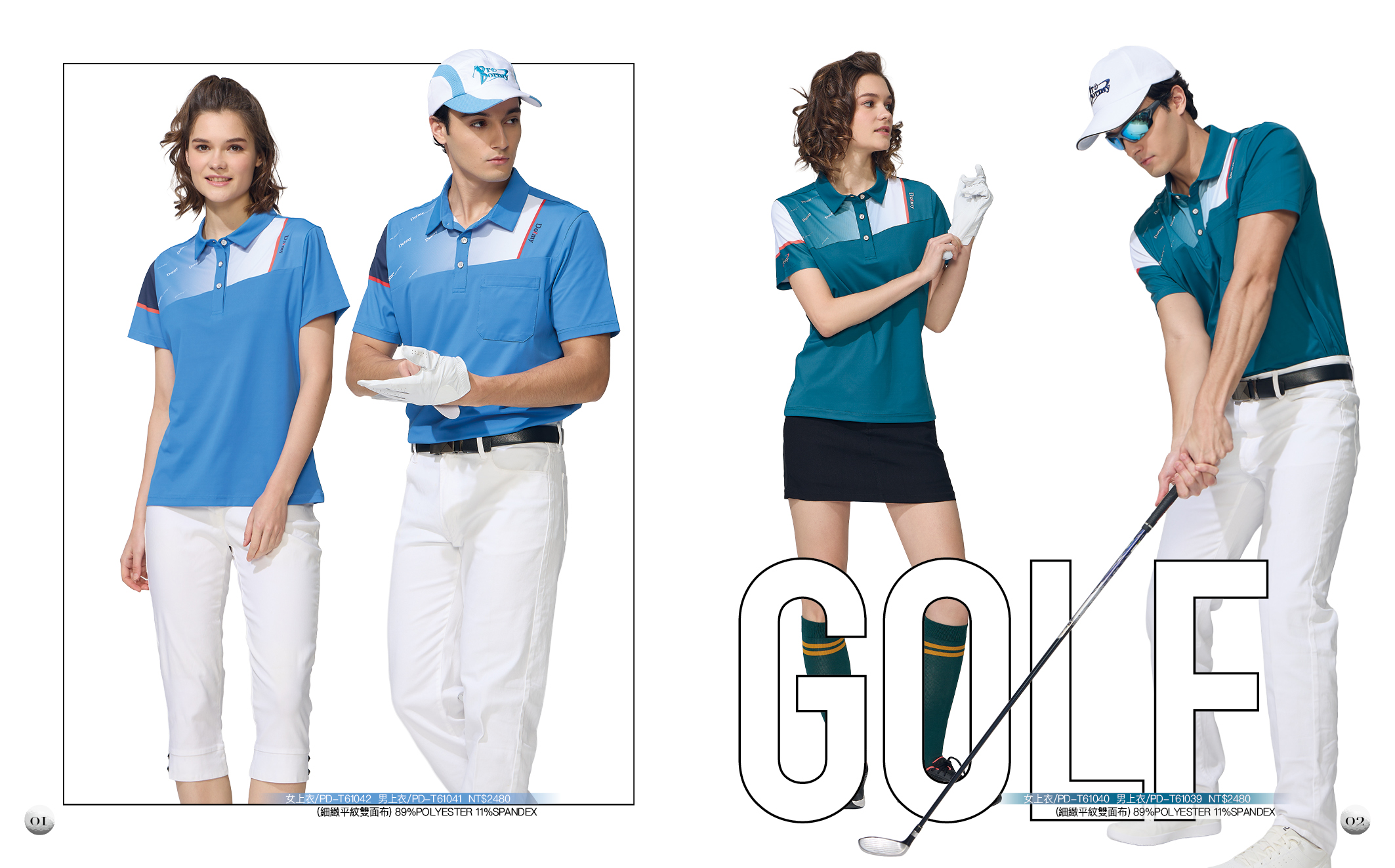 NT$2480 男:PD-T 61041 (水藍)、 PD-T 61039 女:PD-T 61042 (水藍)、 PD-T 61040 89%POLYESTER 11%SPANDEX (細緻平紋雙面布)